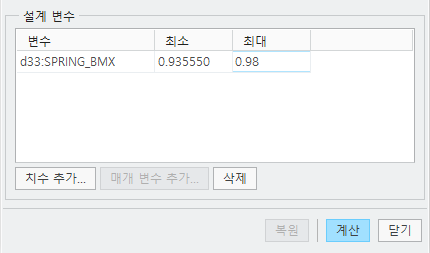 | 분석 > 설계 검토 그룹에서 실현가능성/최적화 선택 설계 조건 영역에서 추가버튼 선택 |