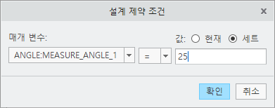 | 값: 에서 세트 선택 입력 필드에 25입력후 확인 다음 설계 제약 조건 대화 상자에서 취소 |