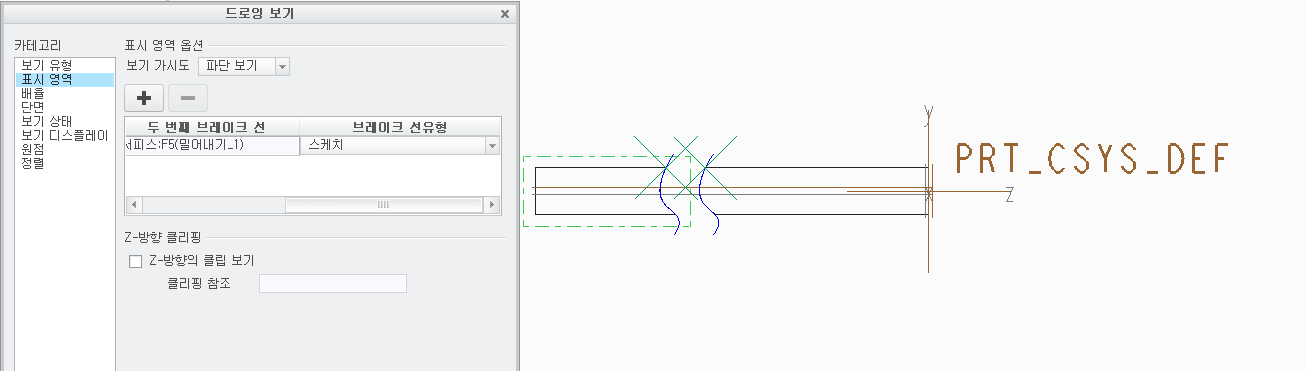 매우긴 Shaft, 케이블을 도면에 표시 할때 "파단 뷰"를 만들어 표시 할수 있습니다. 파단뷰는 도면뷰의 일부 형상을