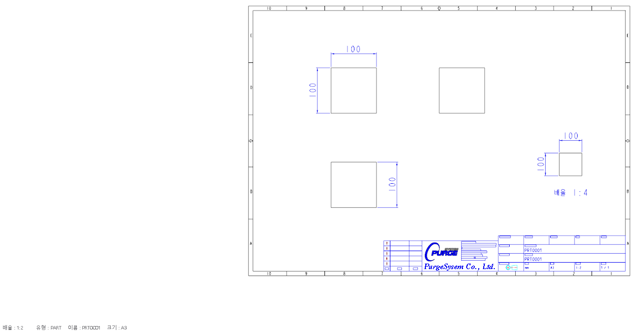 현재 시트의 크기는 A3(420x297mm)이고 배율은 1:2 입니다.