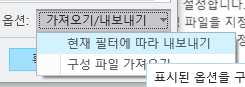 Creo를 종료한 후에도 설정이 유지될려면 설정을 내보내야 합니다. '가져오기/내보내기' 클릭 후