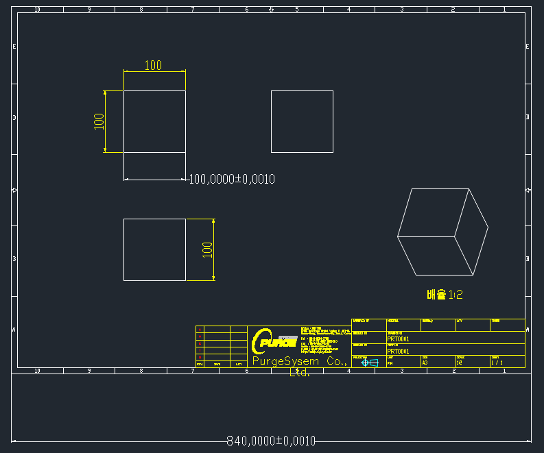 이 정육면체를 A3 크기의 도면에 담으려니 도면이 너무 작습니다.